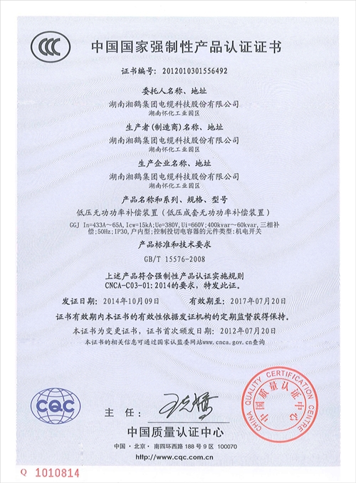 湘鶴電纜資質證書