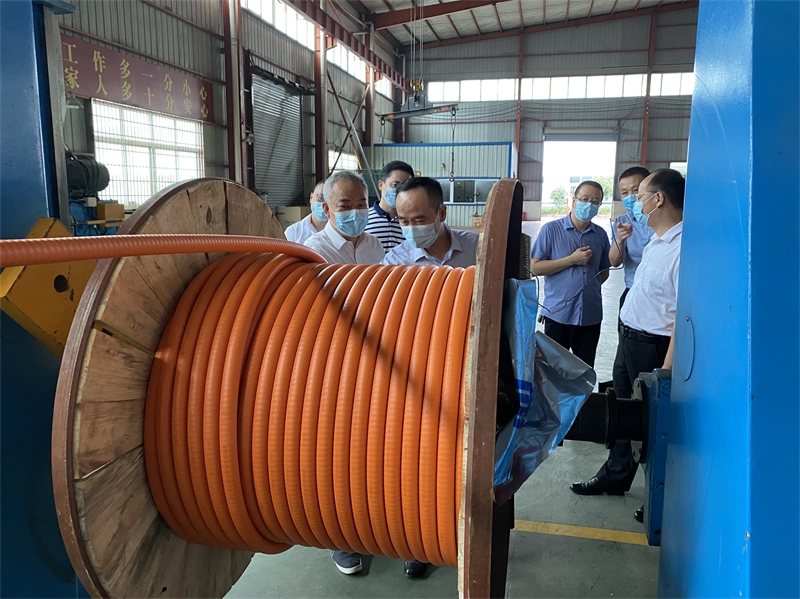 2021年8月11日上午,懷化市市委常委、市委秘書長唐浩然帶領市財政局、市工信局、市市場監(jiān)管局、市人社局等7部門有關負責同志,在懷化高新區(qū)黨工委書記張喜松等園區(qū)有關領導陪同下,蒞臨湖南湘鶴集團電纜科技股份有限公司指導調研,并召開座談會。公司董事長王茂卿、總經理王茂楓、生產總經理汪振武等公司高管參加了此次會議。